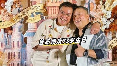 从香港会展中心的慈善素宴到深圳的魔法派对,曾志伟用两天时间完成了“双城庆生”。前一晚刚在60桌素宴上拍卖出45万港币的佛教文物,转头就带着佘诗曼、苗侨伟夫妇、吴启华等百余位艺人扎进深圳的狂欢。三层高的主蛋糕最上层坐着他的卡通公仔,“奖门人生日快乐”的字样旁边,“73”的数字在黑金底色上格外醒目。大合照时明星们里三圈外三圈围拢过来,有人踮脚有人半蹲,手机闪光灯连成一片星海,活脱脱把宴会厅变成了TVB台庆现场。
